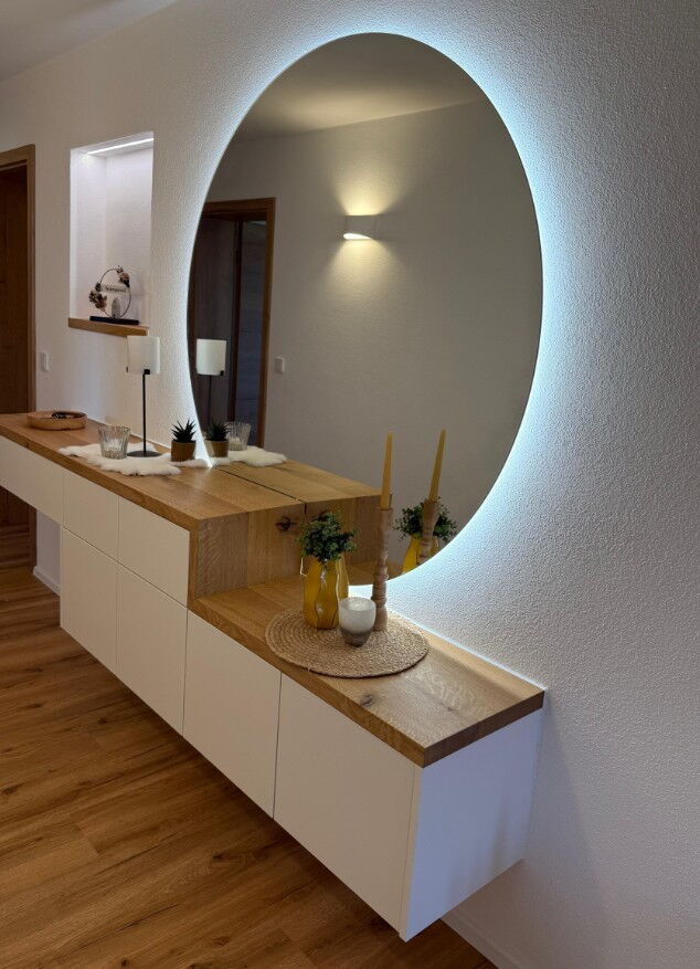 Ein Badspiegel nach Maß rundet jedes Badezimmer perfekt ab. Wir fertigen Spiegel exakt nach Ihren Wünschen – ob klassisch, modern oder mit Sonderformen. Auch für große Bäder oder spezielle Einbausituationen.