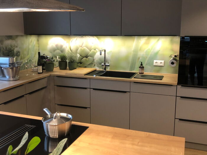 Eine Glas-Rückwand für die Küche bietet maximale Gestaltungsfreiheit. Dank einer großen Auswahl an Farben, Motiven und Oberflächen lässt sich jede Küche individuell und stilvoll veredeln.