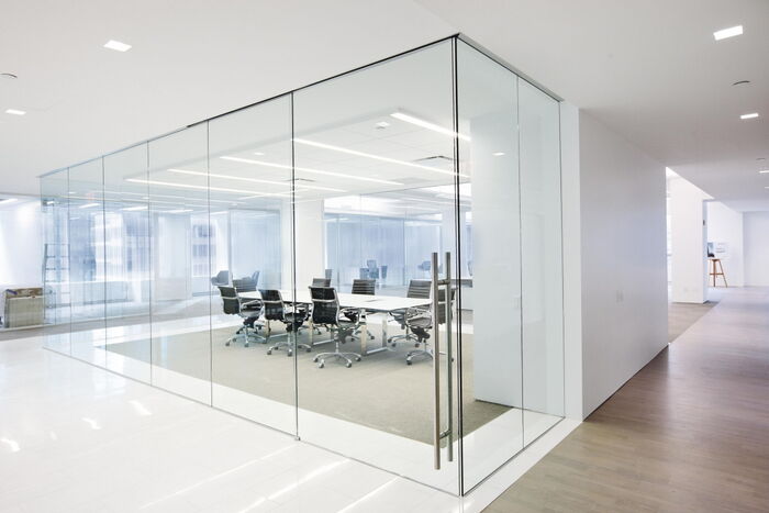 Gerade im Büro lässt sich Glas sehr vielfältig einsetzen. Durch halbtransparente Ganzglasanlagen lassen sich Räume optisch und akustisch abtrennen, ohne zu sehr zur verschließen und abzugrenzen. Aber auch Büroküchen werden pflegeleicht und individuell durch Glasfronten, Arbeitsplatten und Rückwände.
