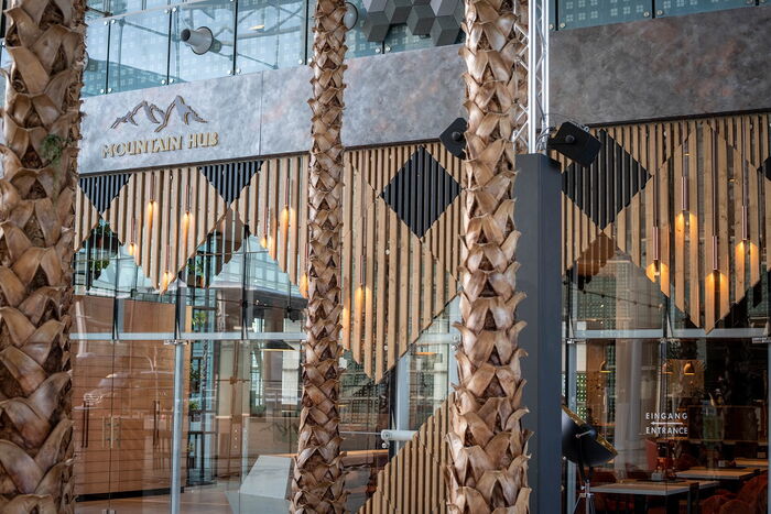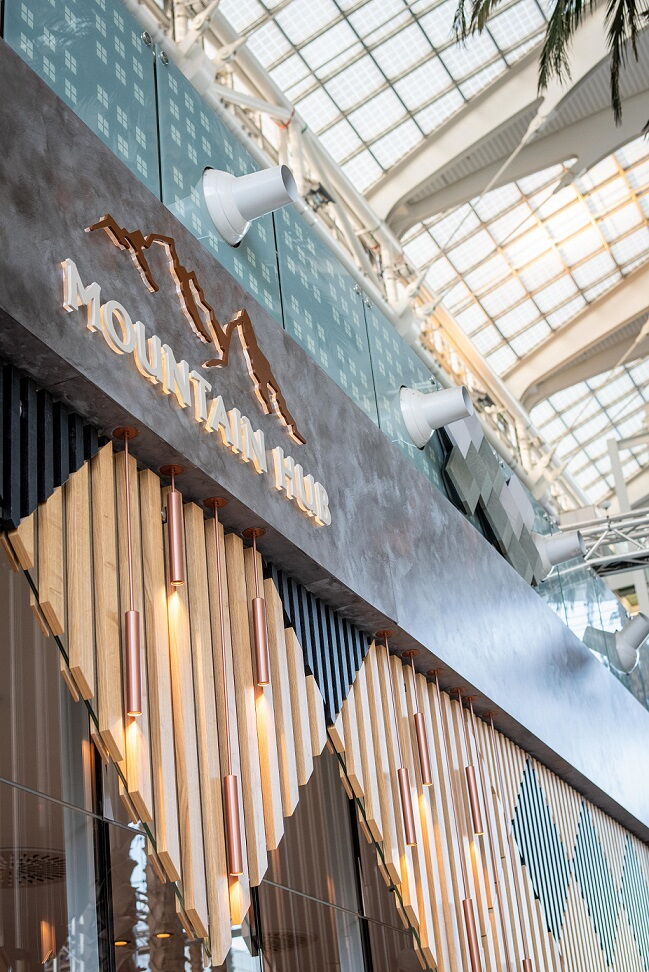 Für die Schreinerei Zellner Möbel durften wir für das neue Restaurant Mountain Hub Gourmet im Hilton Munich Airport das Glas montieren.