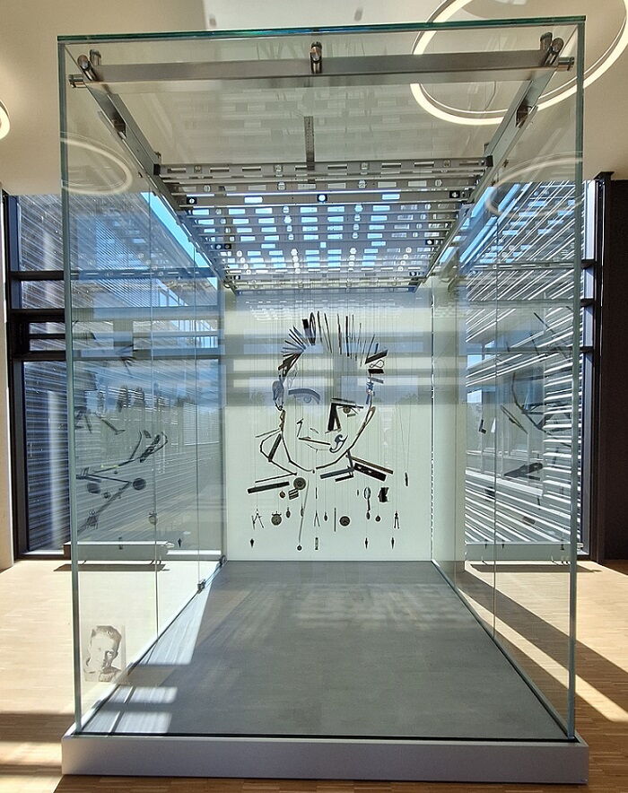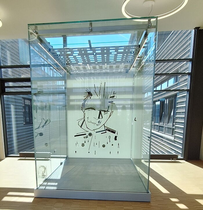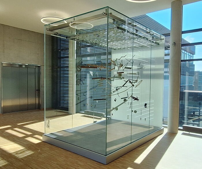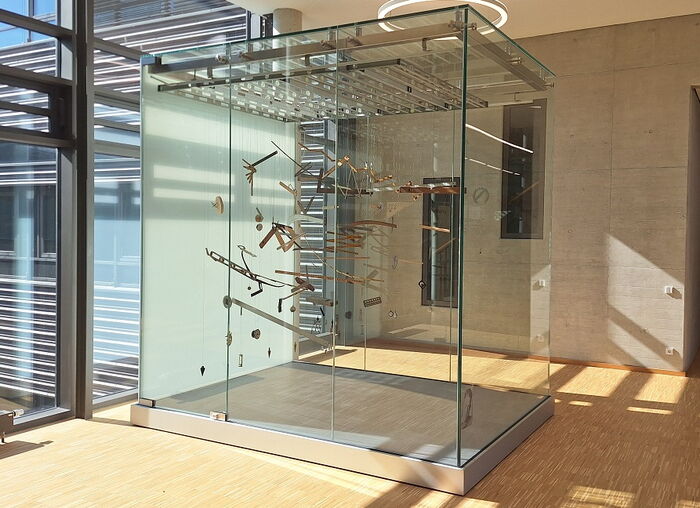 Wir wurden beauftragt, eine fast raumhohe Vitrine für ein Kunstwerk des Künstlers Ralph Helmick zu planen und aufzubauen.